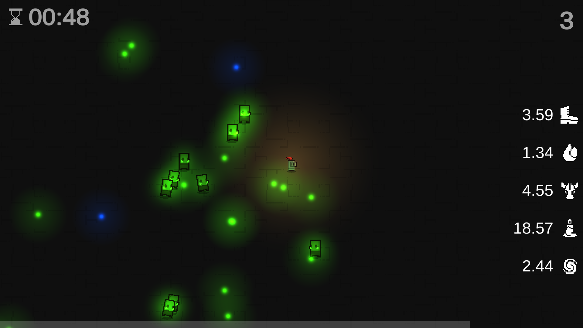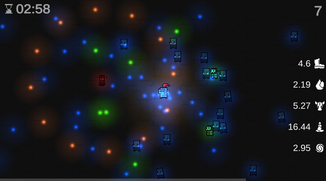 The only goal of the game is to survive. You will have different stats everytime you play, and sometimes it will grant you great survivability. As the game continues, the waves will increase and so will the number of enemies. Different enemy types have different attacks, with increasing number of bullets. Before you know it, your screen will be covered in bullets you must avoid.