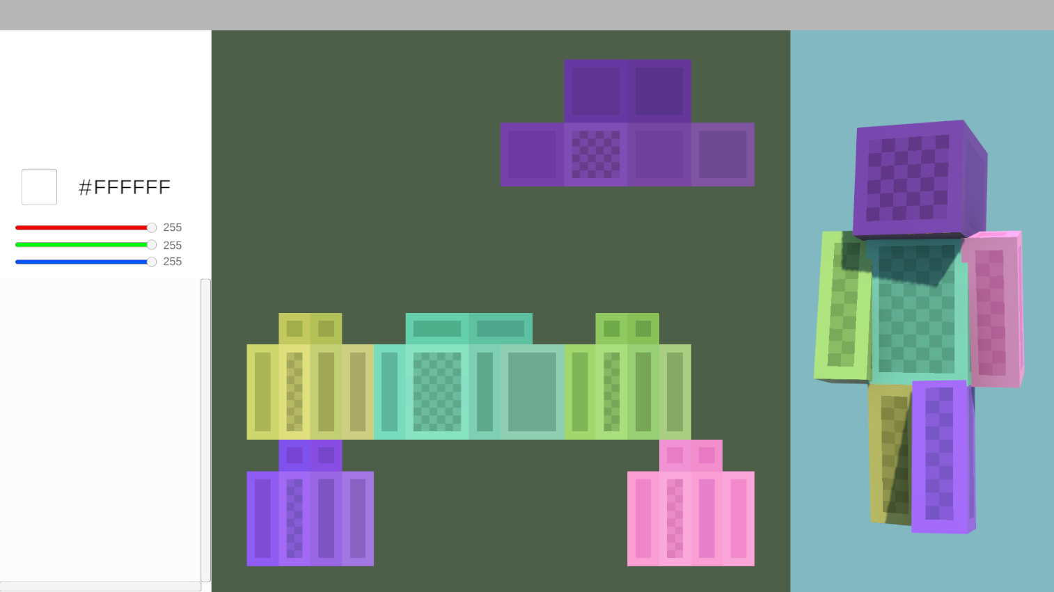 From what I built with it, you could draw on a 64x64 canvas (the size of a Minecraft skin), and see the result on the model to the right of the canvas. You could also rotate the model, and change the color of the pixels you drew.