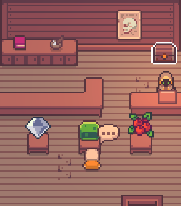 The game is heavily inspired by Moonligher on Steam. In our game, you stumble across a magic cloak while dangerously wandering outside your village. When you put on the cloak, it gives you the ability to see in the dark. The poor soul who left the cloak also left a book, which grants you access to his shop in the village.